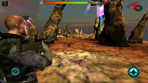 A space research program to find the existence of life on Mars went in vain, Due to some malfunction in the spacecraft, the scientists lost control of the spacecraft and crash landed on an unidentified planet...a planet ruled by horrendous aliens. Before the scientists could react, the attack started by the aliens. Now your job is to shoot the aliens and finish the fight already started.