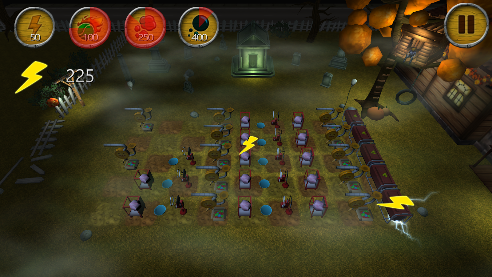 - Build different fortifications to slow down and stop your enemies (icons on the top of the screen);